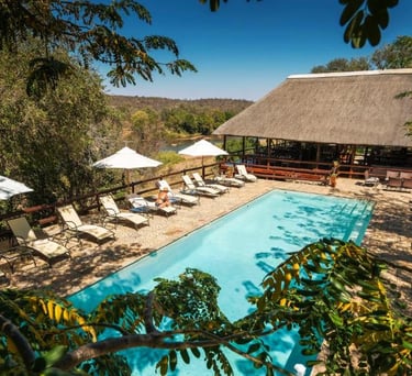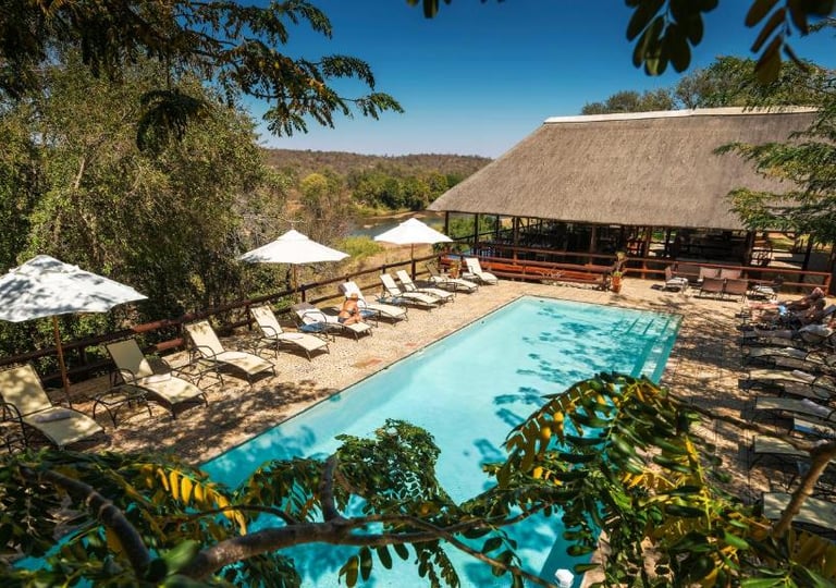 Terraço amplo e privativo com vista para o Rio Olifants