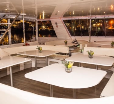 - Luxo e Versatilidade: O Mirage foi projetado com atenção aos detalhes para oferecer uma experiência confortável em diversas condições climáticas. O deck inferior, equipado com assentos acolhedores, proporciona abrigo contra intempéries, garantindo um passeio aconchegante mesmo em dias mais frescos. Para os aventureiros, o andar superior oferece uma experiência ao ar livre perfeita para absorver a brisa marítima e a emoção da navegação.