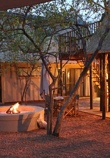 Reúna-se em volta de uma fogueira sob o céu estrelado africano, onde pequenos lêmures (bush babies) saltam entre as árvores e porcos-espinhos curiosos exploram por perto, trazendo à vida a magia pura do mato.