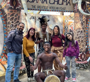 Encerrando a experiência, desfrute de uma deliciosa refeição no restaurante Nyama Choma, que oferece o melhor da culinária africana autêntica.